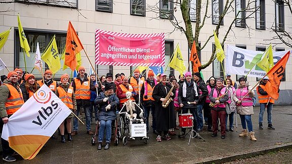 Vor Beginn der zweiten Verhandlungsrunde demonstrierten die Beschäftigten des öffentlichen Dienstes am 15. Januar 2026 anlässlich der Finanzministerkonferenz.